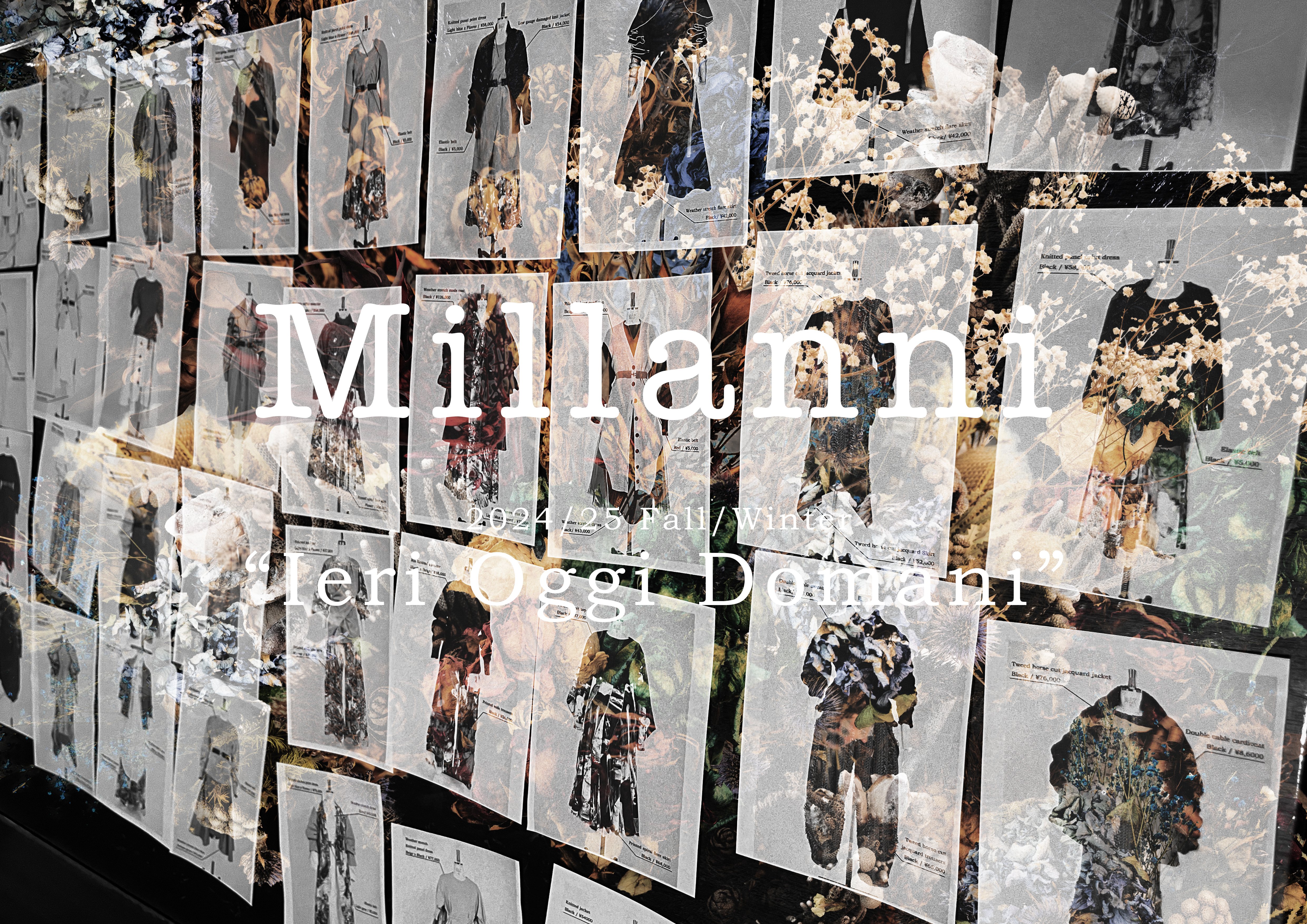 /インスタレーション:展示会場を背景にモデルによる公開ルック撮影。どなた様もご自由にご覧いただけますが、通路側からの見学となります。展示会場へは17:30以降ご入場いただけます。