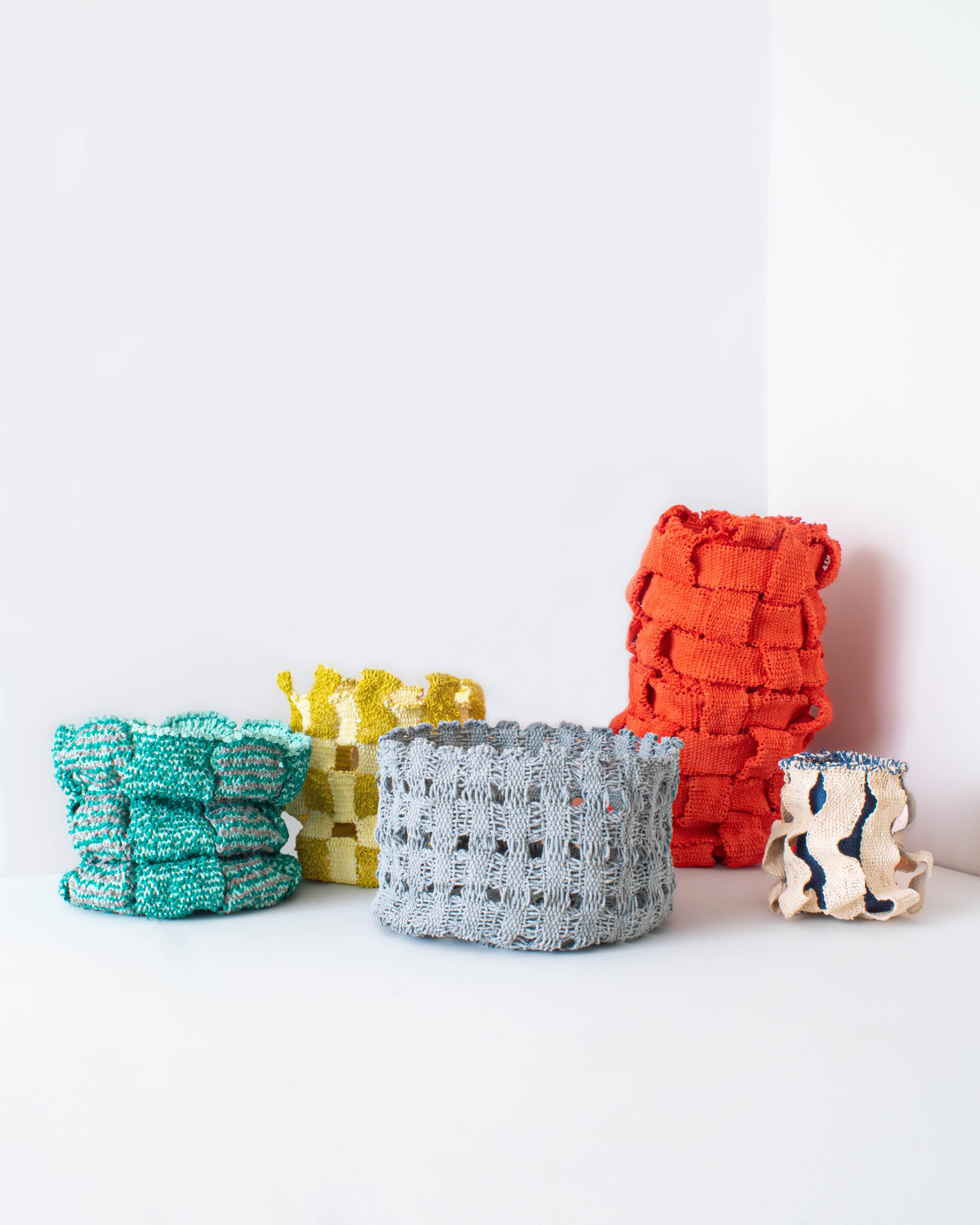 今回は、全てバスケットの形に落とし込み、物を入れられるという用途を持ちながらも、空間の中に存在するアート作品としてアプローチしています。