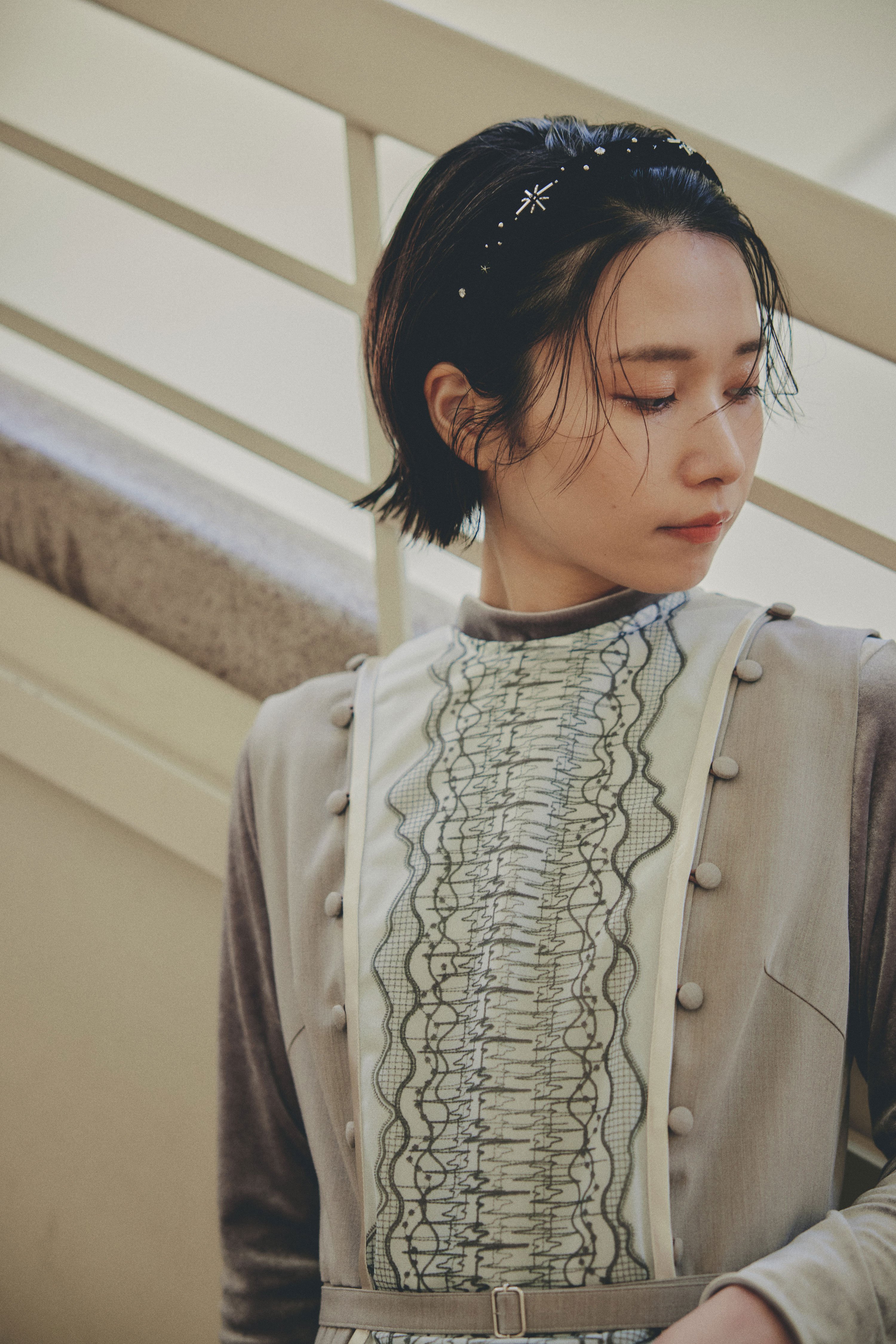このテーマでは時に激しく時に静かな鼓動を、 リズミカルなステッチやオリジナルプリント柄、 繊細で揺らぎのあるテクスチャで表現しました。
