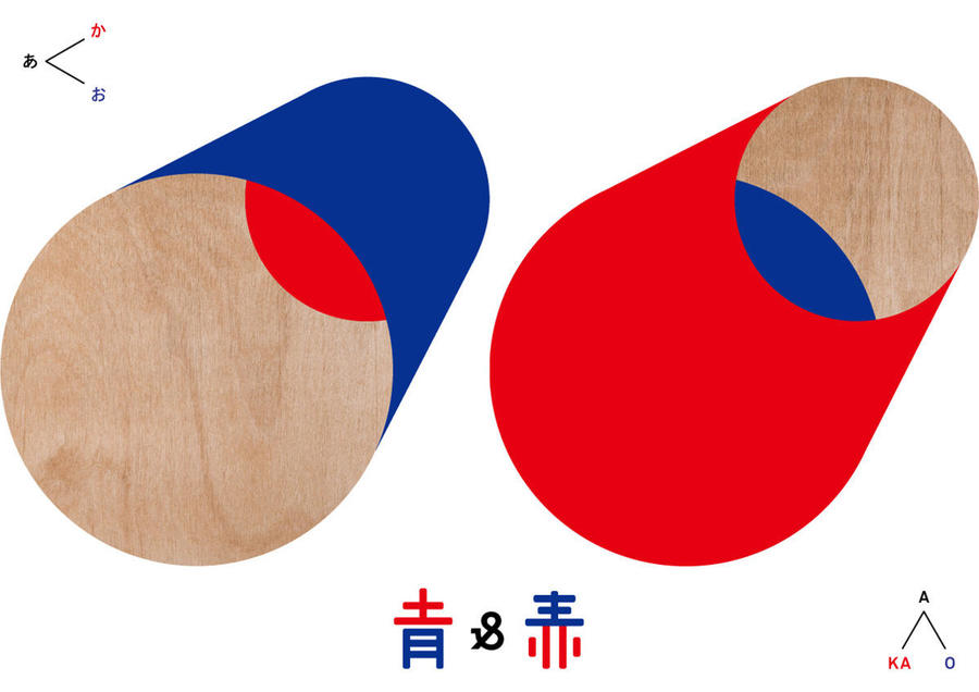 今回は、木パネルの特徴を扱い、平面に層を見い出すことで奥行きがでないか、とか、図形の補完性を扱い、パネルが一要素となって奥行きを感じることはできないかなどを試みている。対比がわかりやすく、意味に縛られない色として青と赤の組み合わせを用いたが、このバリエーションが幾つか集まると、無視できない印象となってたちあがってきた。