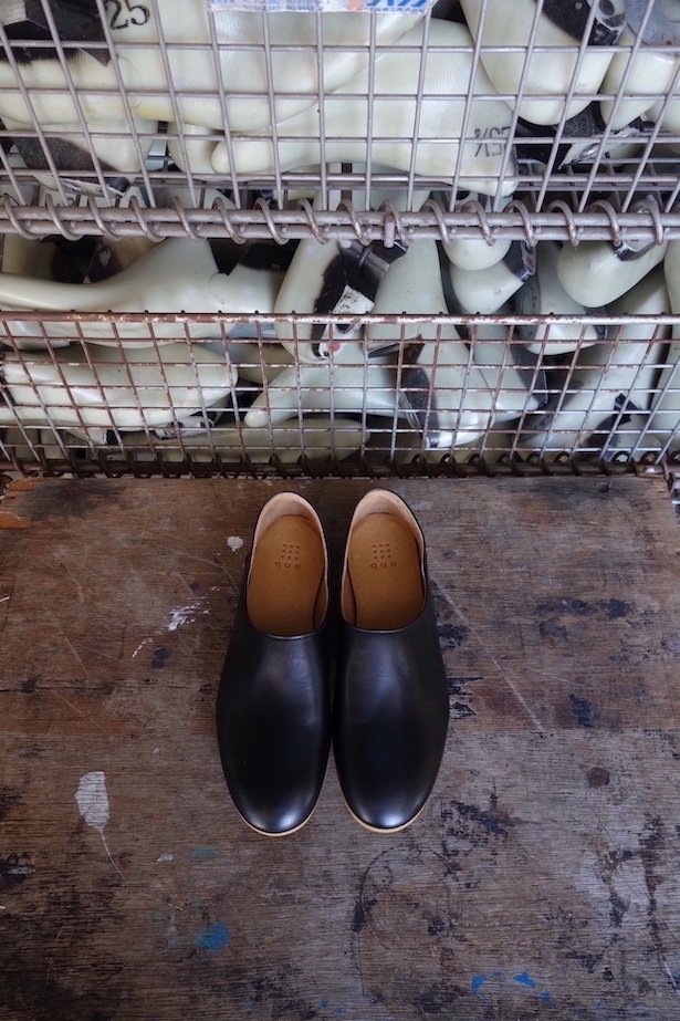靴メーカーによるファクトリーブランド ご試着の上お選びいただきたく 通販や卸販売はせずqueスタッフによる対面販売のみ 店舗は持たずイベントや販売会等での展示即売を行っています