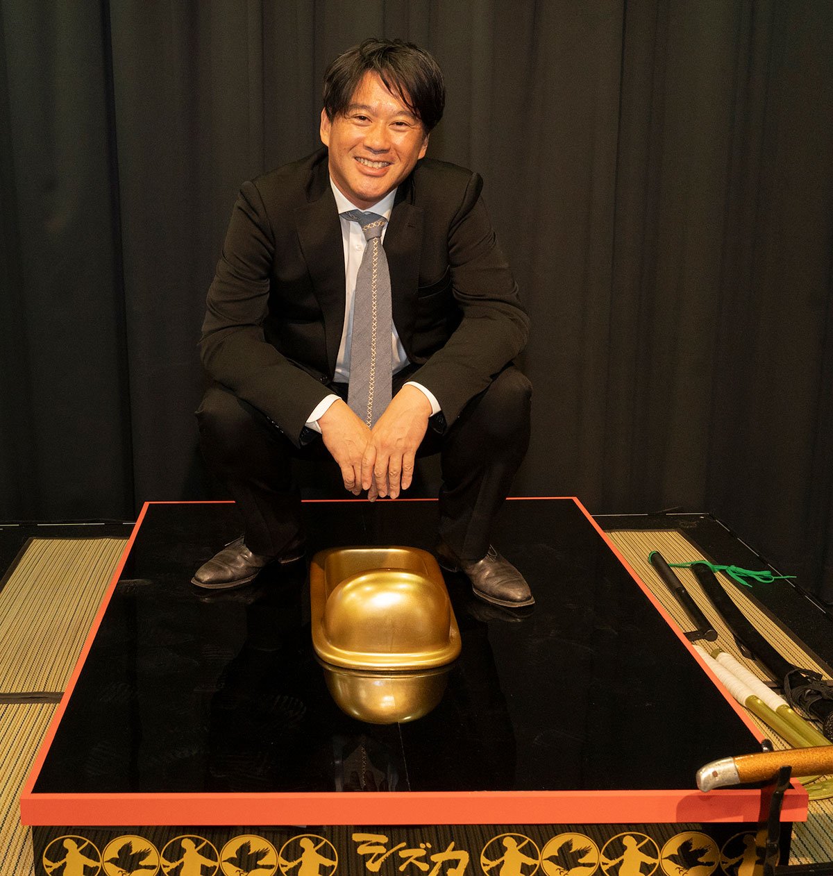 日本の魅力を世界に伝えたい!という思いを独自路線で発信している北川さん。映画に登場するアイコニックな黄金の便器を再現したフォトスポットにて。