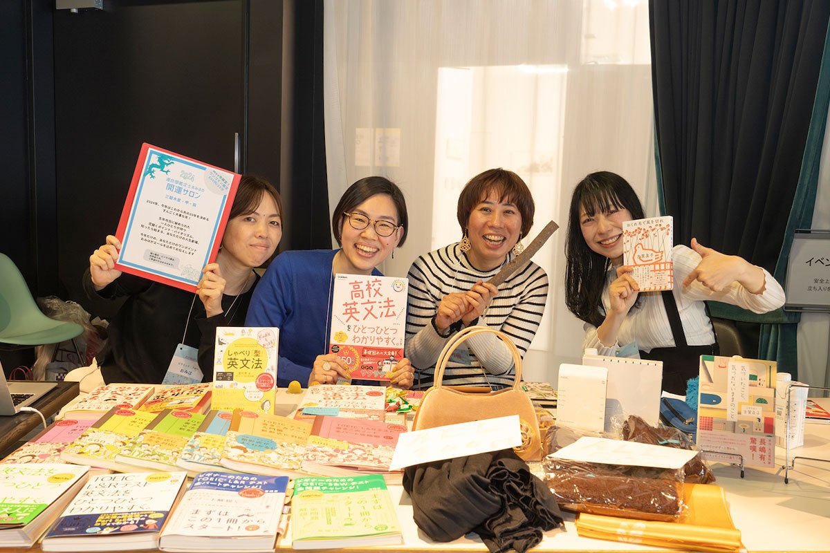 今年も楽しげなピラミッド4!英語講師のメグリッシュこと富岡恵さん、日記エッセイストの古賀及子さん、運命学鑑定士のおみほさん、パソコンシッターのまさみさん。