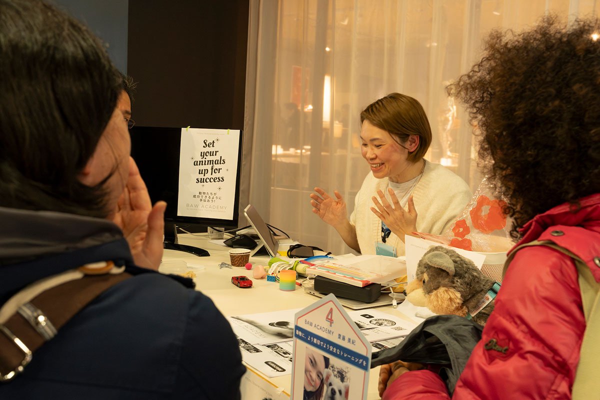 こちらが本業、よりよいアニマル・ケアとアニマル・トレーニングを探求するプロたちのブース。賑わってます。