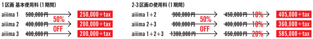 利用区画は1-3区画まで(aiiima 1,2,3)ご希望に応じて選択頂けます。