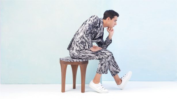 今回は大理石をテーマにしたメンズスーツ・ワンピース・スツール・クッション・バックを発表する。
