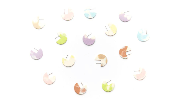 定番の陶磁器のジュエリーに加え、金属製ピアスや天然石を使った商品などもございます。