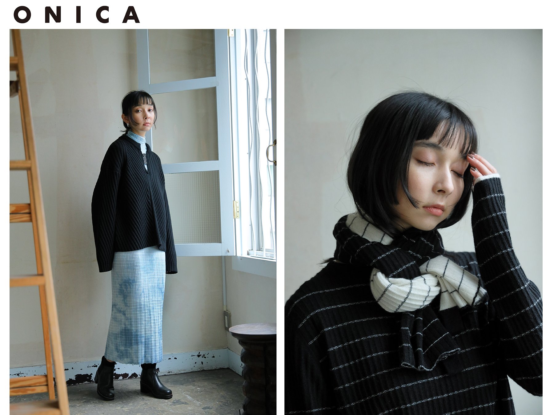 ニットウェアレーベルONICA(オニカ)は、身近な人の内面や佇まいを彩るものでありたいと考えます。日常の心象的な事柄をものづくりに投影し、後世まで大切にしてもらえるような「思いが残る」衣服を作ります。デザインから素材選定・編み組織・纏い方までを一貫して行う、ニットならではの工程。そのすべての過程に丁寧に向き合いながら、日本のニッターさんと共にコレクションを1年に1度制作し発表しています。