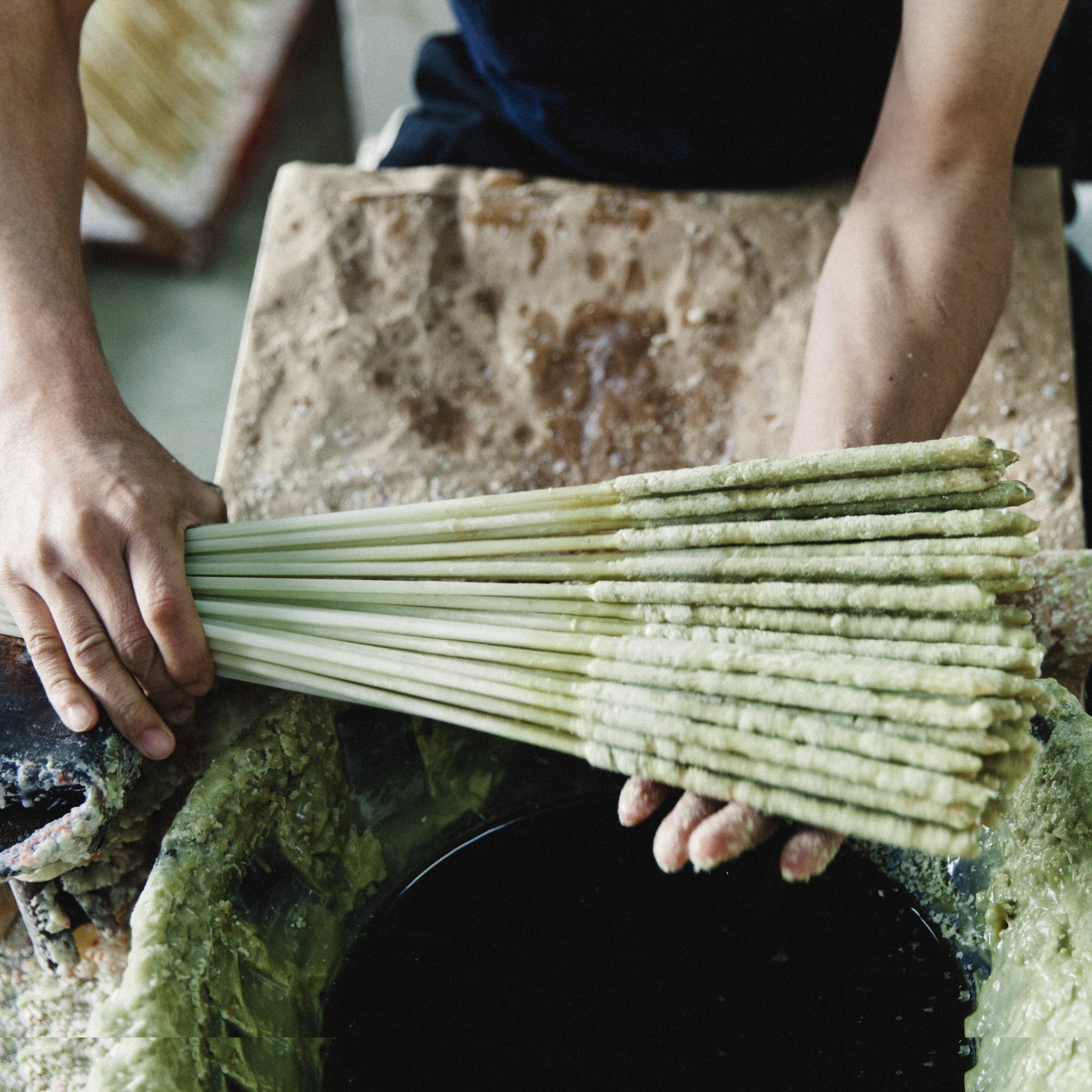 口にしても害のない植物蝋のみを使い、一点一点職人の手作業でつくり続けられています。
