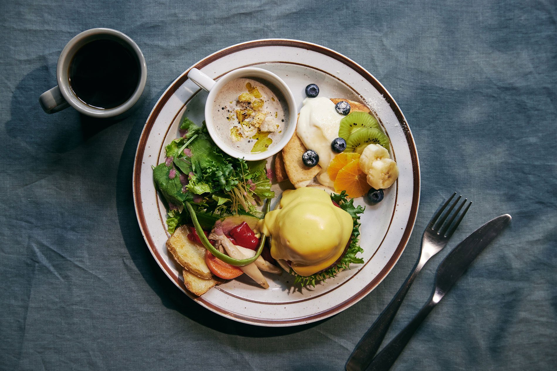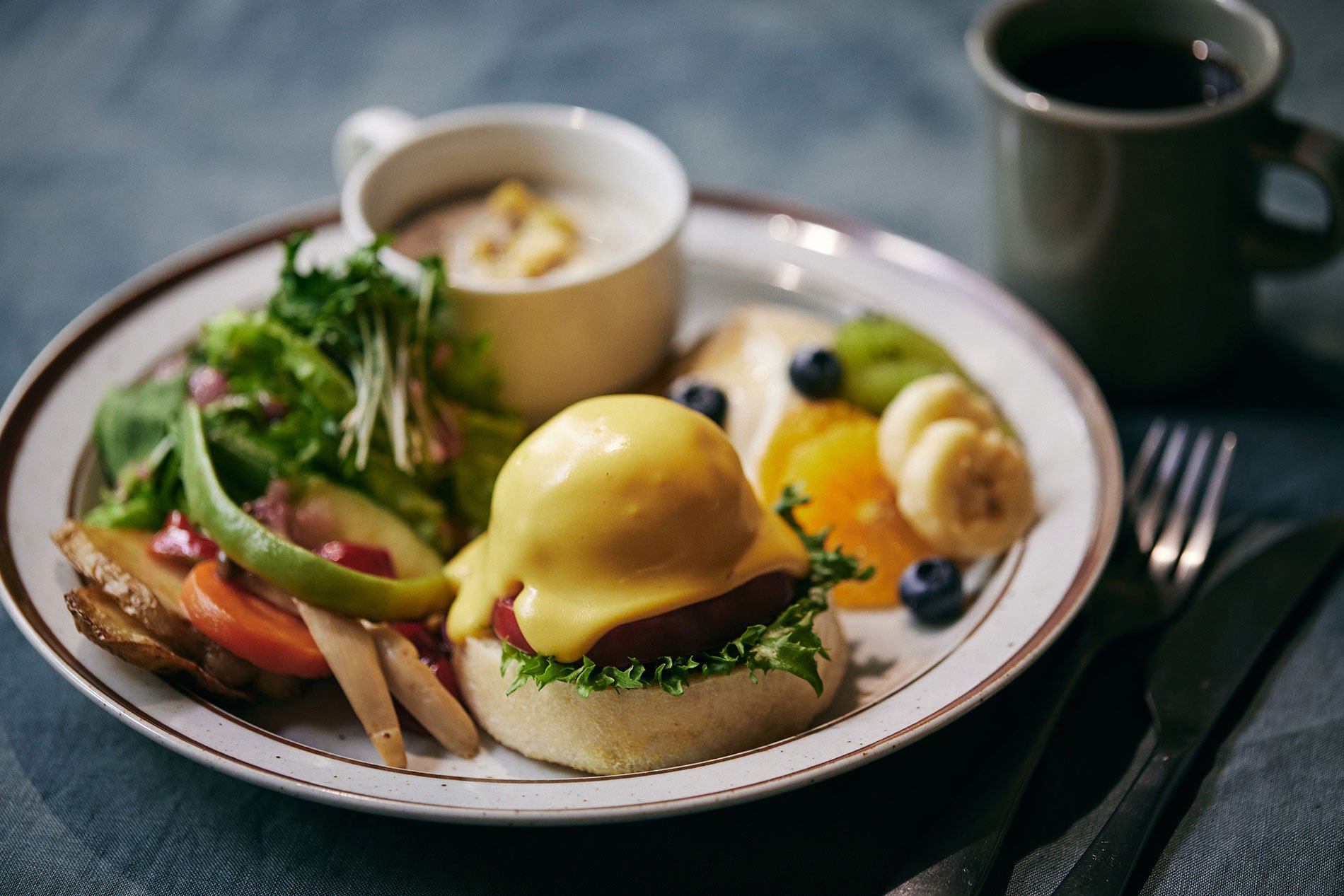開店当初より不動の人気商品をギュッと詰め込こんだ、1日50食限定のスペシャルプレートです。バターやベーコン、卵、化学調理料は使用せずに、動物性食材が生み出すようなコクや香り、食感を再現しました。随所にシェフの技が光るプラントベースプレートをお楽しみください。