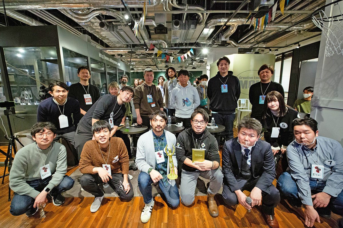 8組のスタートアップが登壇した『登龍モヴ』。新規性、実現可能性、社会性、そして情熱などが評価ポイントでした。前列中央が優勝者のおひとり、大場さん。