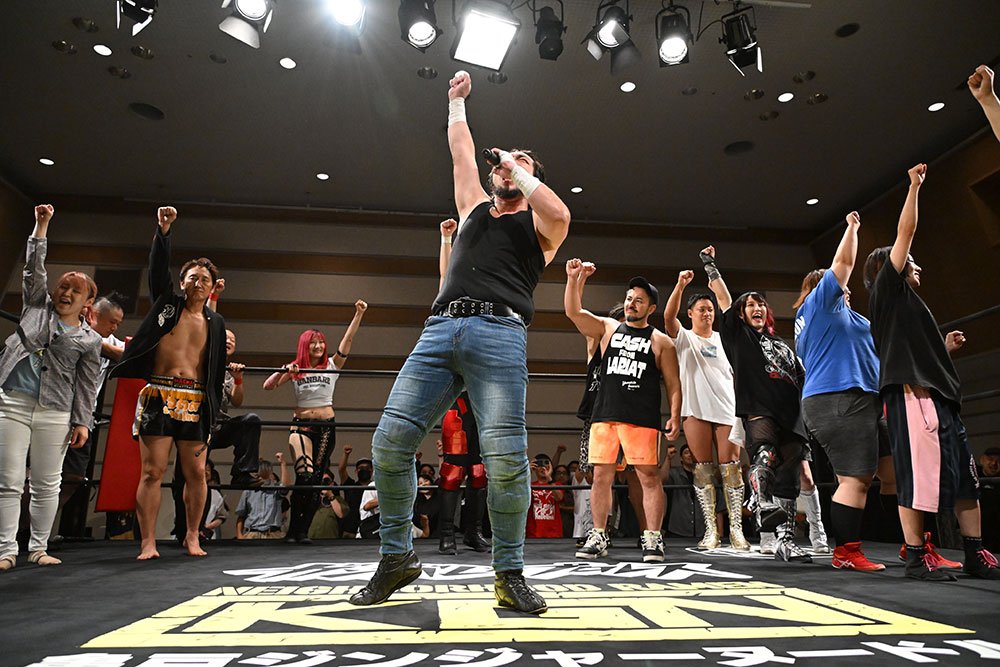代表の大家健選手の掛け声で大円団!会場がひとつに。(*ガンバレ☆プロレスさんご提供)