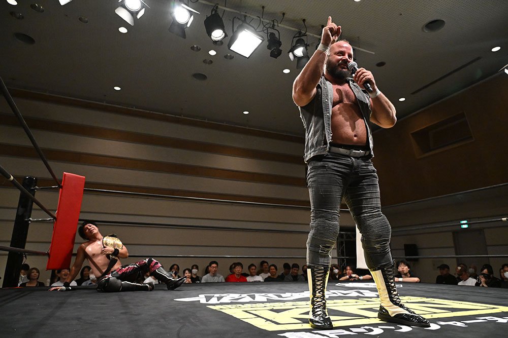 その王座、次は俺がねらうぞ!と宣言したのはハートリー・ジャクソン選手!日本のビールがお好きだそう♡(*ガンバレ☆プロレスさんご提供)