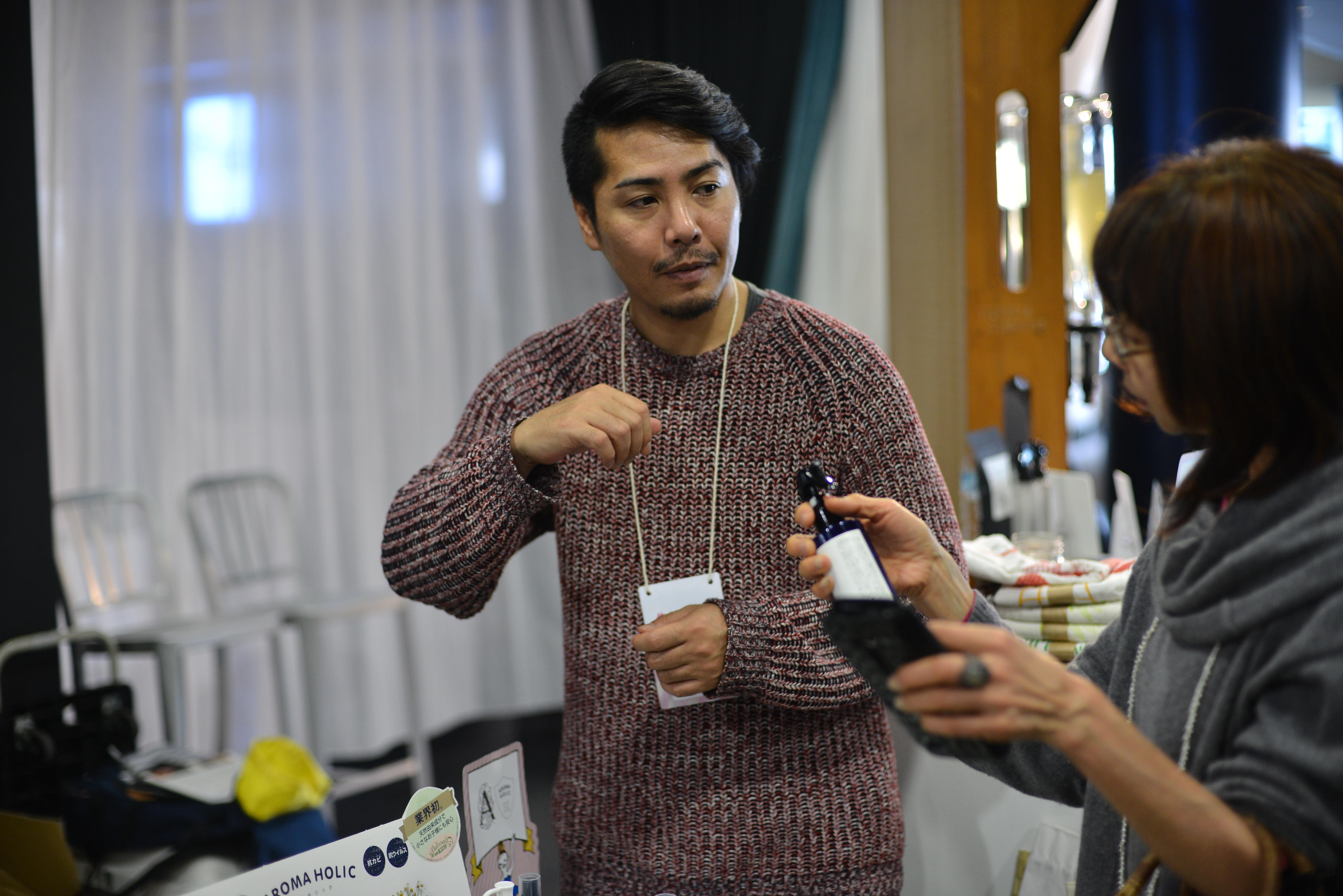 2018年のMOV市に出展中の佐々木さん AROMA HOLIC大好評でした。