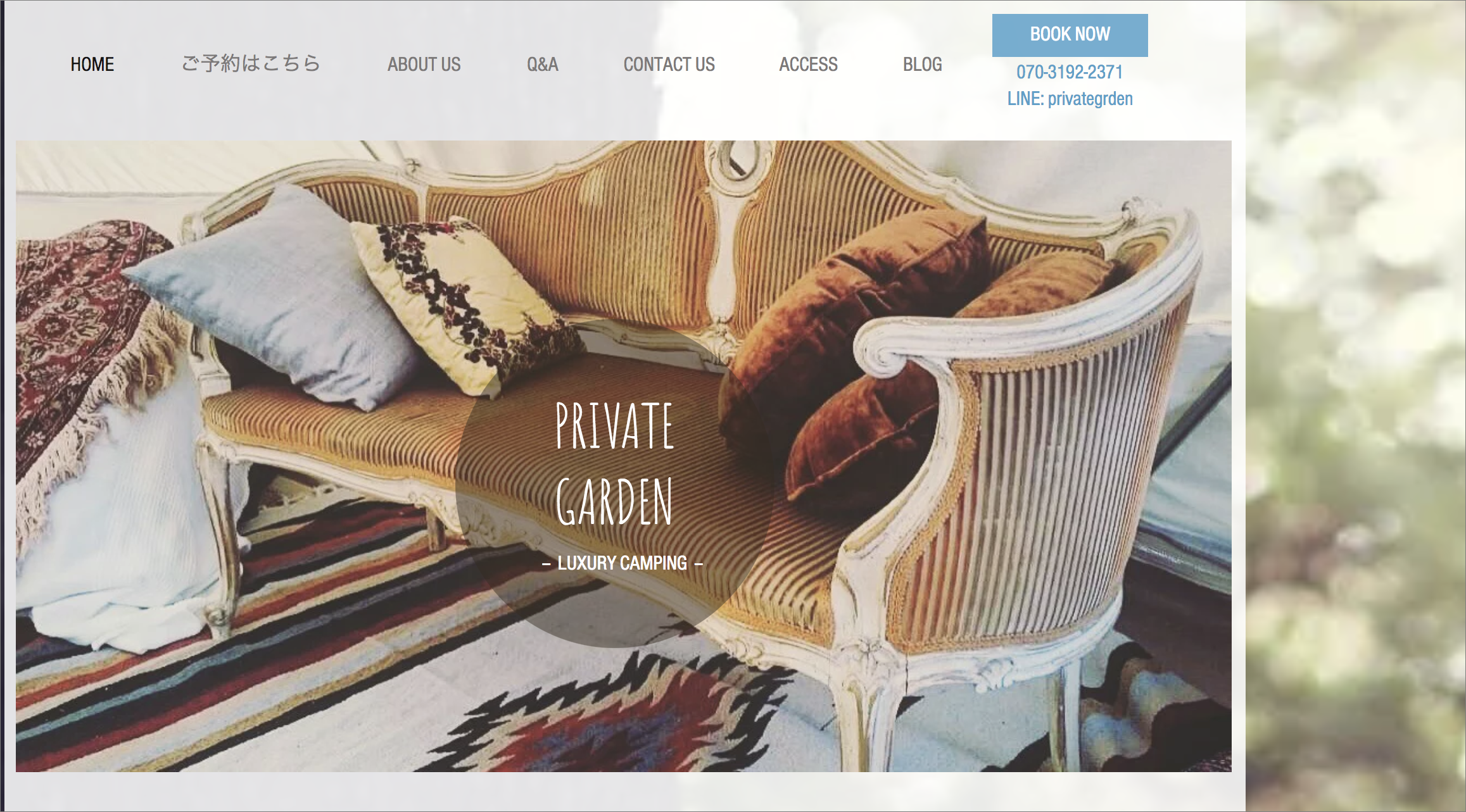 近年あちこちにできているグランピング施設。画像は千葉県大多喜のPRIVATE GARDENさんのサイト(上野さんちょっと気になってるとか)。