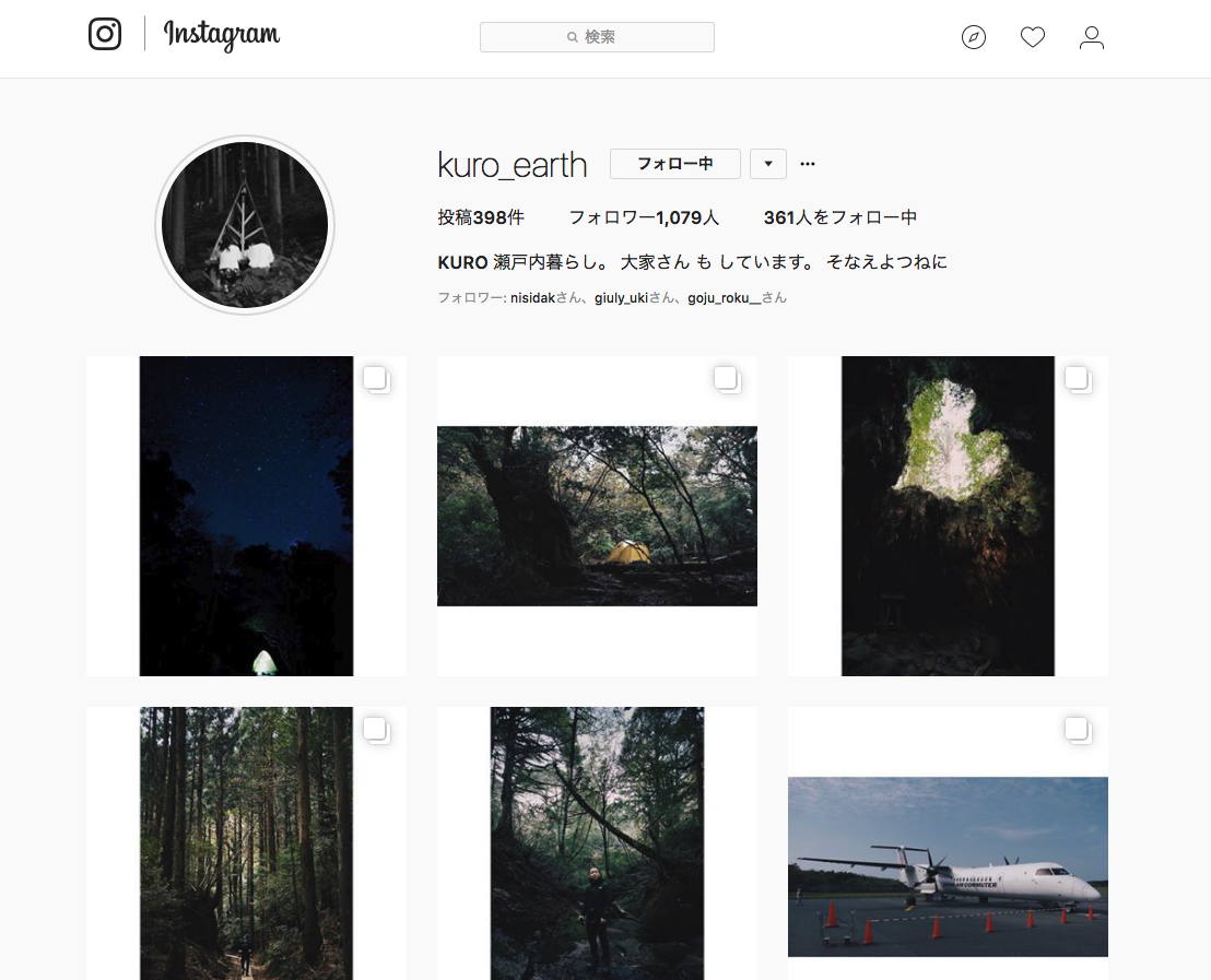 - kuroさんて人、僕いちもくおいてます。インスタグラマーです。kuroさんは僕の1個上くらいの人で、瀬戸内海で大家さんしてるんですよ。