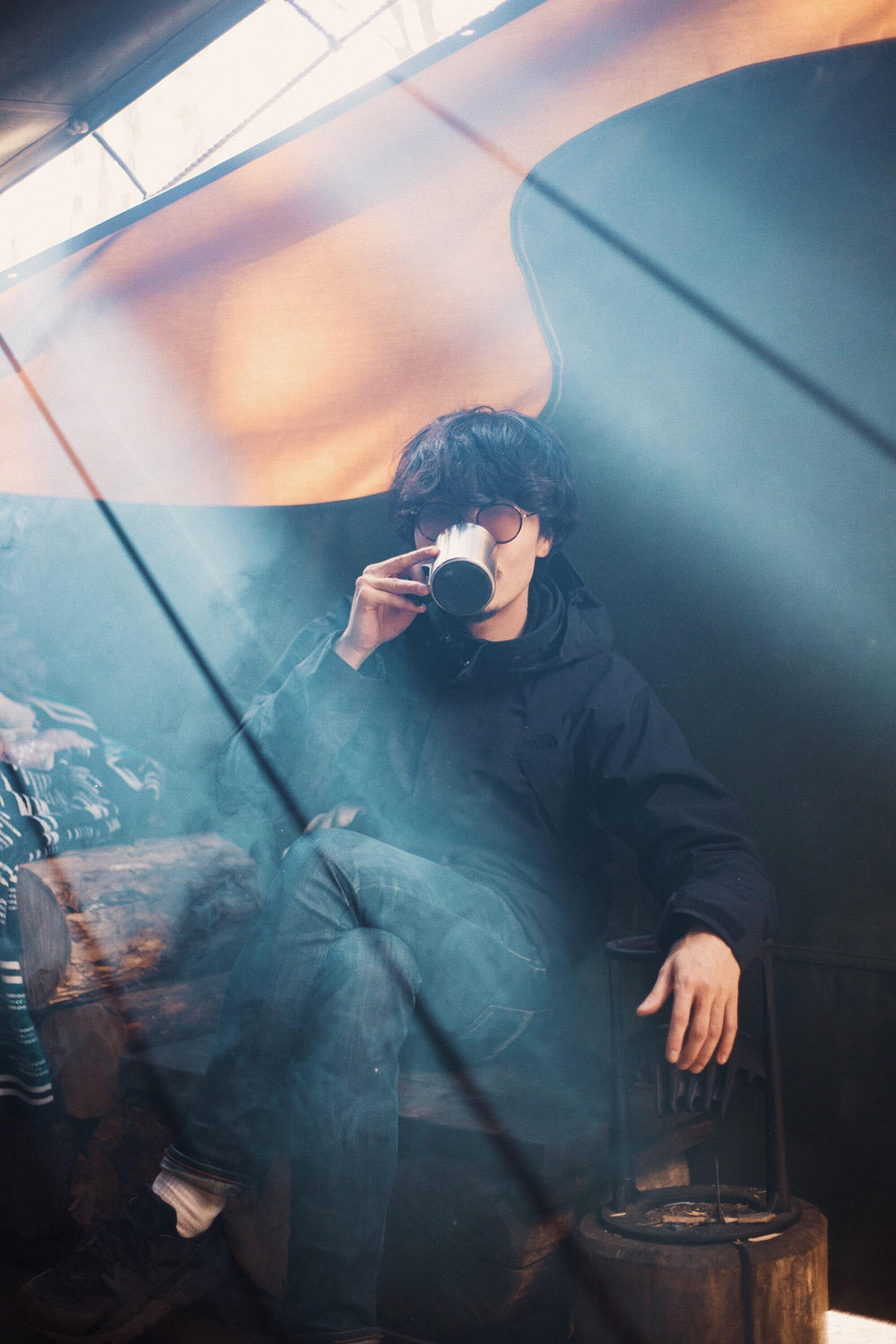 ふわふわの髪にすらりとした体躯で飄々と話す、上野友暉(うえのゆうき)さんは、年間キャンプ30泊をこなす、26歳のグラフィックデザイナー。ルマンド(ブルボンさんの銘菓)をこよなく愛する、やや天然の青年だ。