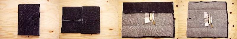 ▲デニムケースのサンプル。たたんでボタンでとめる、シンプルで使い勝手のいい構造。
