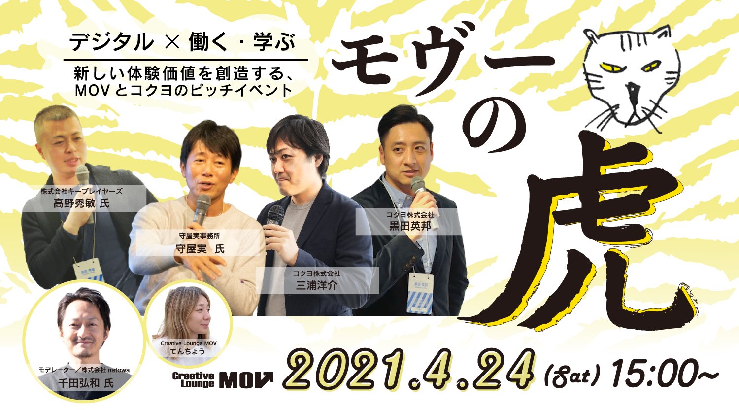 Creative Lounge MOVとコクヨ株式会社で共催するピッチイベントモヴーの虎にて挑戦者を募集します。