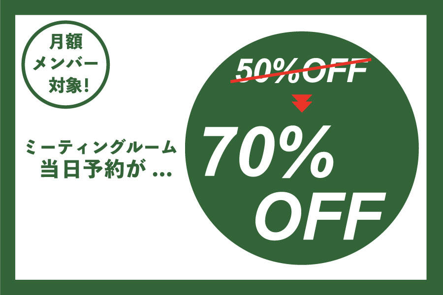 ミーティングルーム当日予約が ずっと70%off になりました!