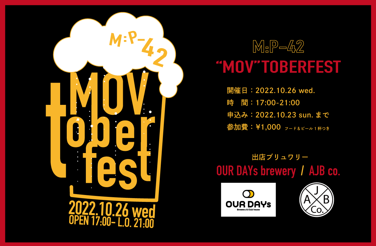 10月26日(水)ビールの祭典 MOV t o b e r F E S T 開催します🍻 10/3 フード情報更新🌮