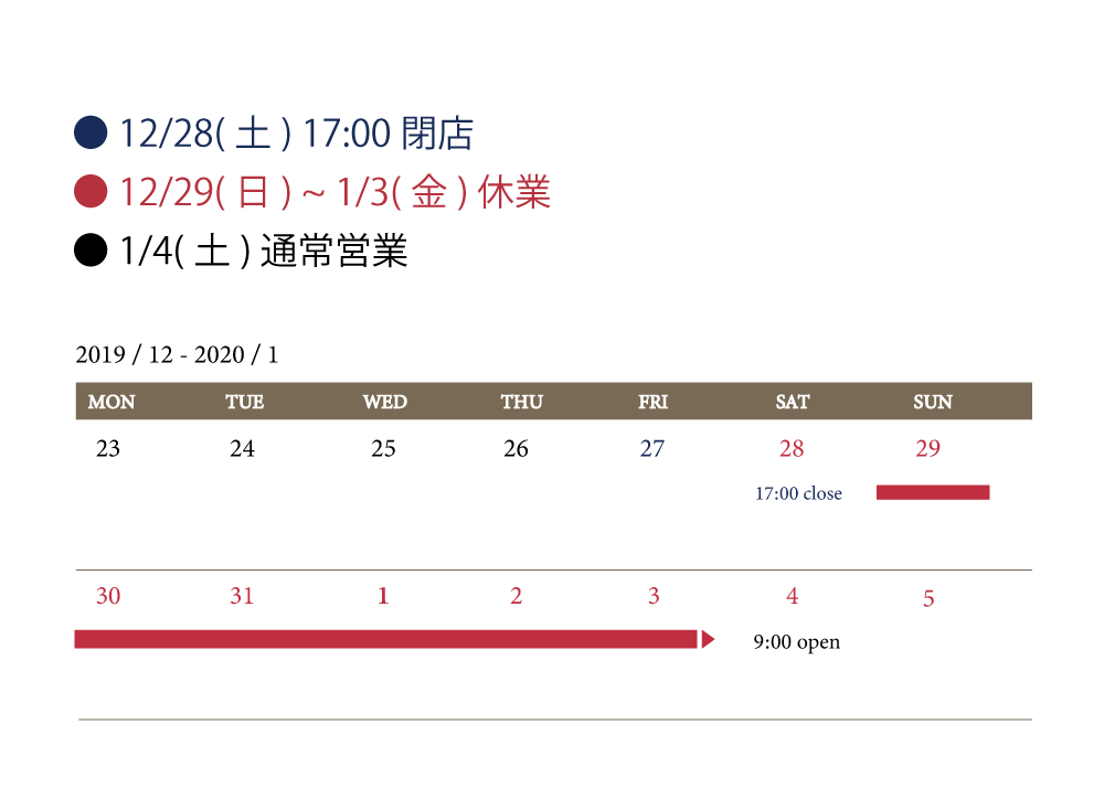 誠に勝手ながら以下の日程で年末年始のお休みを頂戴いたします。
