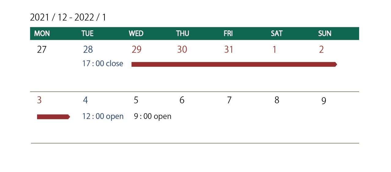 誠に勝手ながら以下の日程で、年末年始のお休みを頂戴いたします。