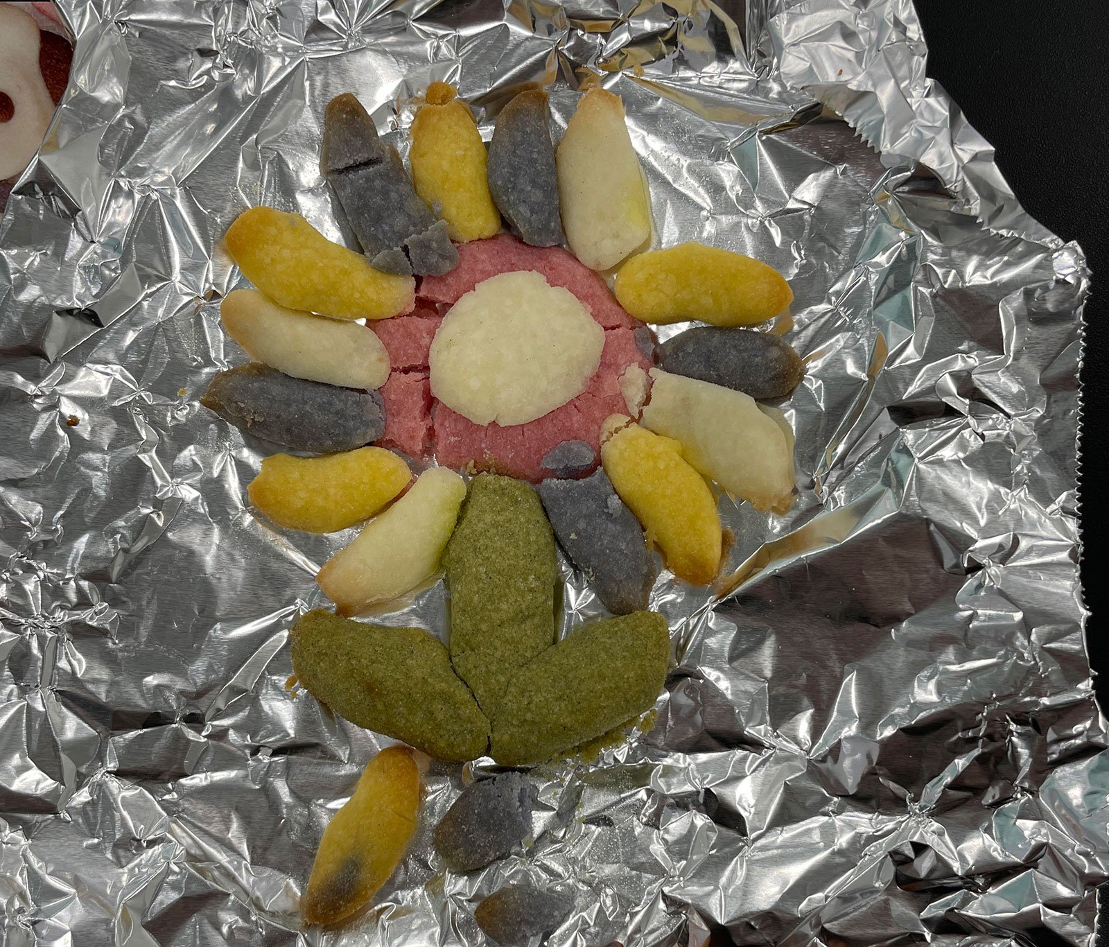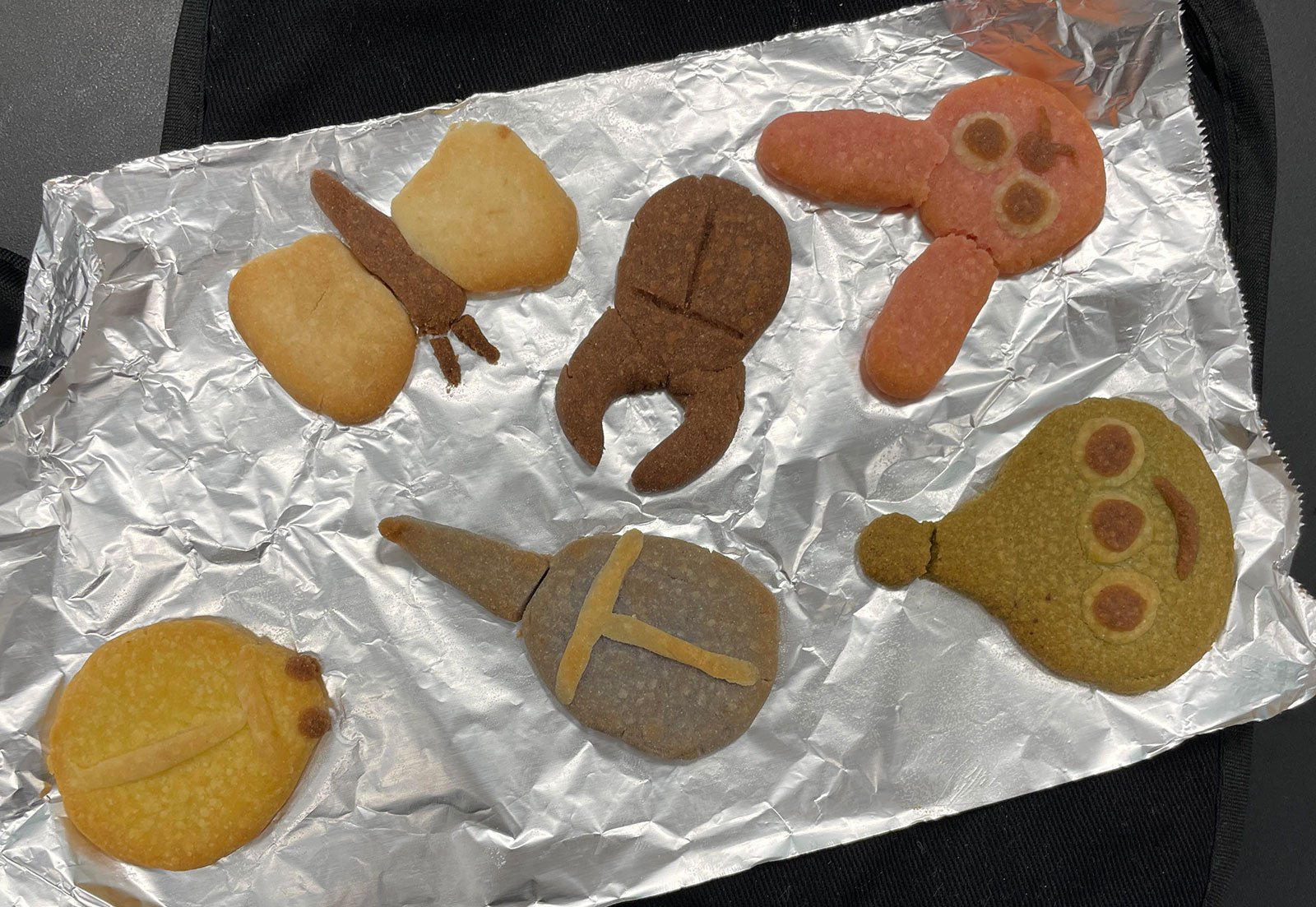 わけた生地をつかって、自由にかたちをつくっていきます。注意することは1つだけ。生焼けにならないように、5㎜以下の厚さでつくること。