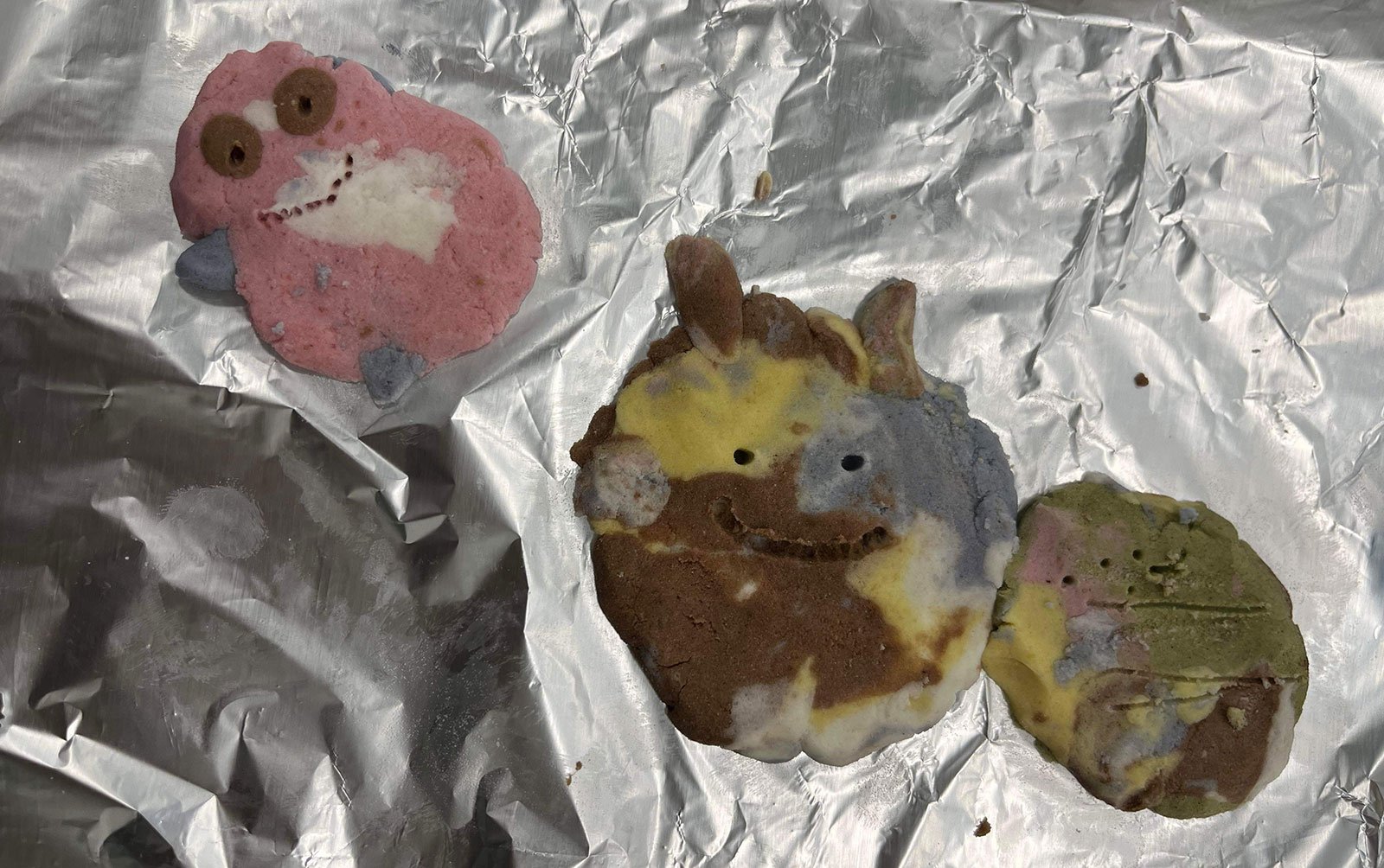 トースターで焼くこと10分。あっという間に焼きあがります。すぐに食べたいけど、冷ます & 固まるまで少し待ちます。子どもたちは、待っている間も元気いっぱい。あっという間に仲良くなって、戦ってみたり、絵をかいてみたり、出来あがったクッキーを覗いてみたり、かわいい姿をたくさん見られました。