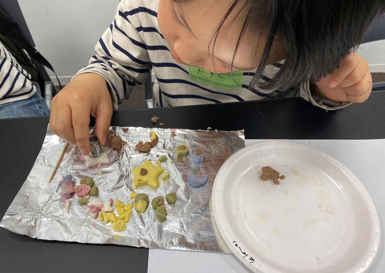 生地どうしをまぜてもOK。型をつかってもOK。なんでもOK!!自由につくるって、大人になるとあれこれ考えがちだけど、子どもたちはさすがです。手をやすめることなく、みんなどんどん進めていました。