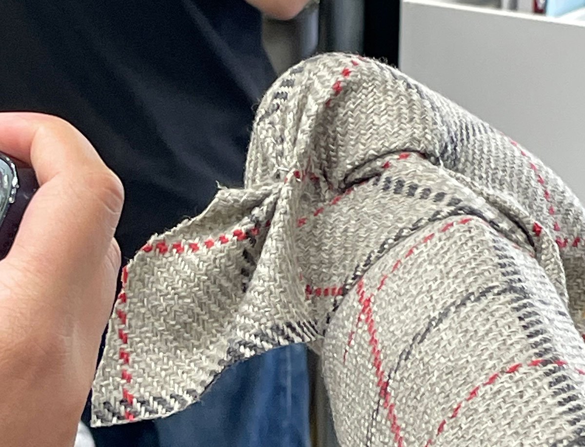 折り返すと、こんなにきれいなパイピングが!上下のチェックのつながりもバッチリです。