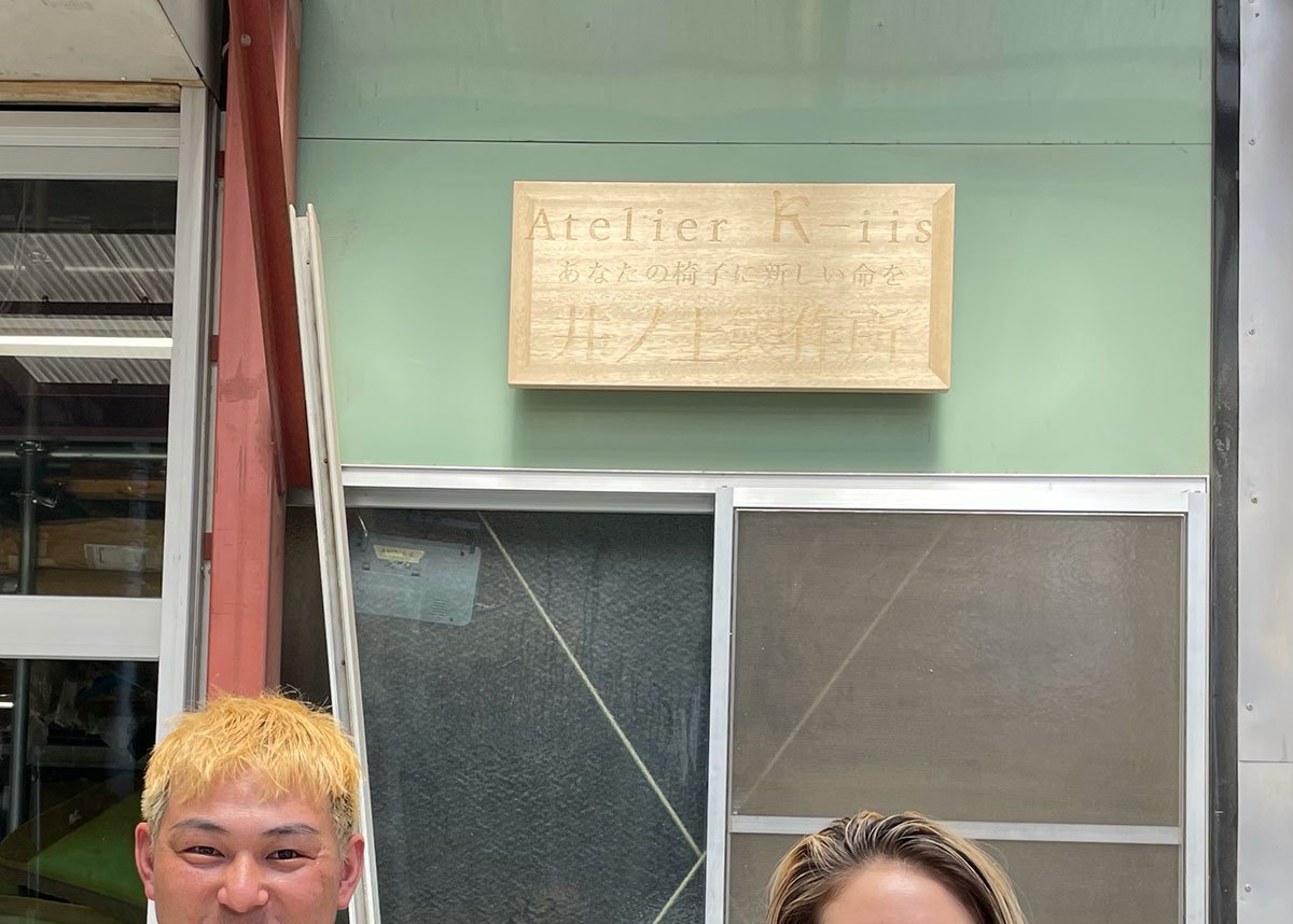 そういえば表にはふたつの屋号がありました。工房はシェアしてるけど、きちんと独立されてる証なのだそうです。スタッフの頭上に「井ノ上製作所」の文字。