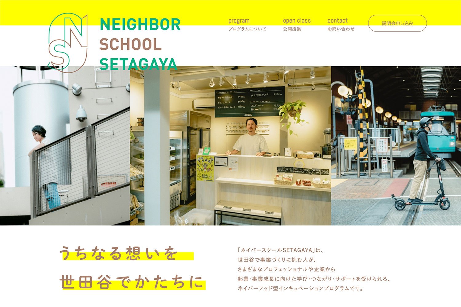 ネイバースクールSETAGAYA』というインキュベーションプログラムで、世田谷で事業づくりに挑む人たちが、いろいろなプロフェッショナルや企業から、学びやつながり、サポートなどを受けられるというもの。毎回、異なる講師をお呼びして、ユニークなお話からインスピレーションを得たり、受講生どうしでアイディアをブラッシュアップさせたりしていく、4ヶ月間のコースだそうです。長丁場!
