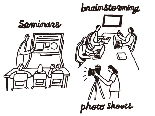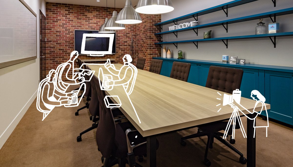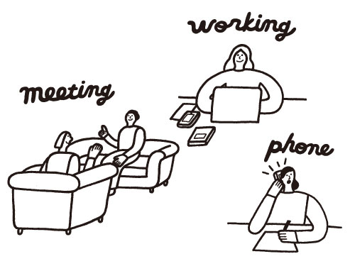 チームミーティング、ブレスト、説明会やセミナー、取材撮影のロケーションにも。