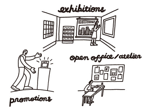 個展、物販、マーケティング、オープンアトリエなど、様々な用途でご活用ください。